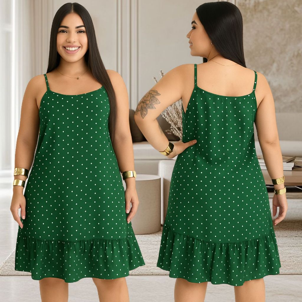 Vestido Curto Cava Americana e Alças B'Bonnie Alana Poá Verde