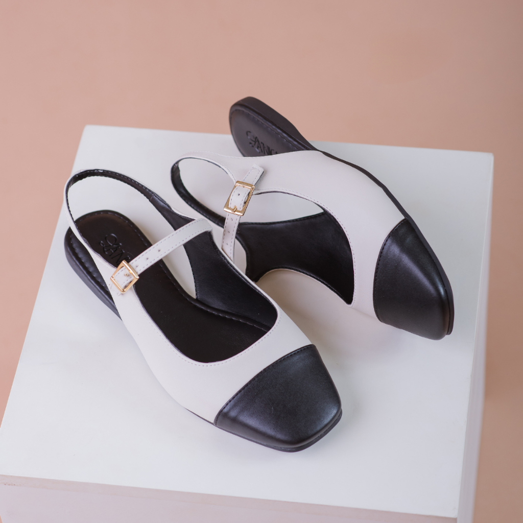 Sapatilha Bico Quadrado Mary Jane Boneca Slingback Preta Dourada