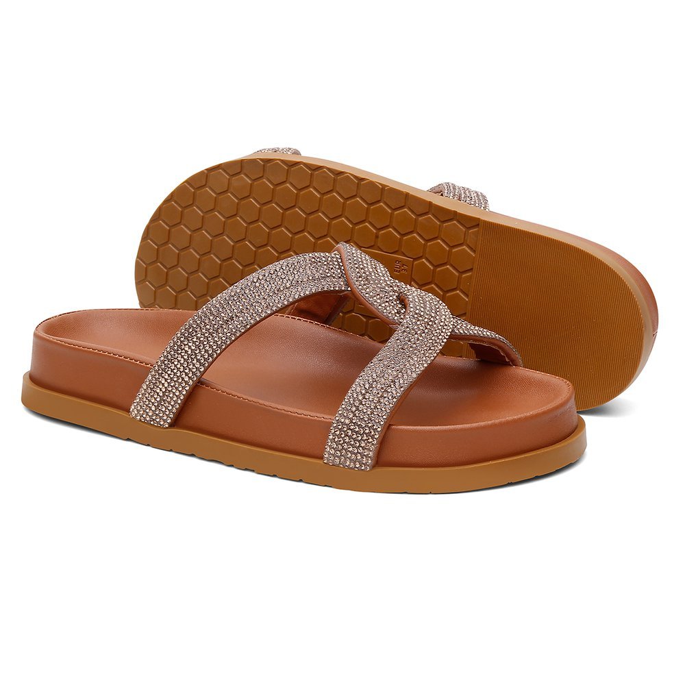 Sandália Papete Feminina Vittal Helena Tiras Cruzadas Strass