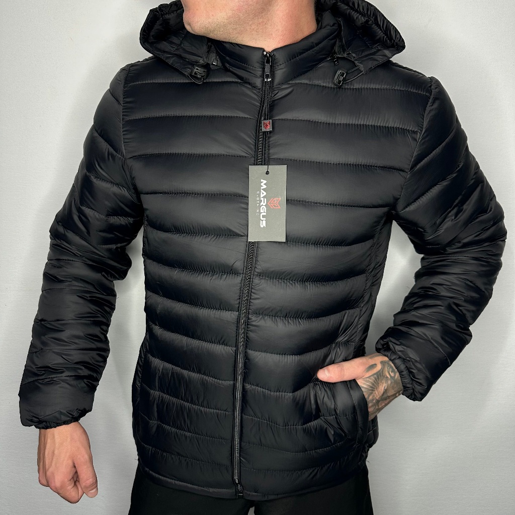 Jaqueta Puffer Acolchoada Masculina Com Capuz Removível Preto Emporio Alex