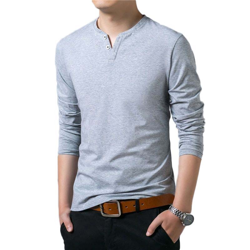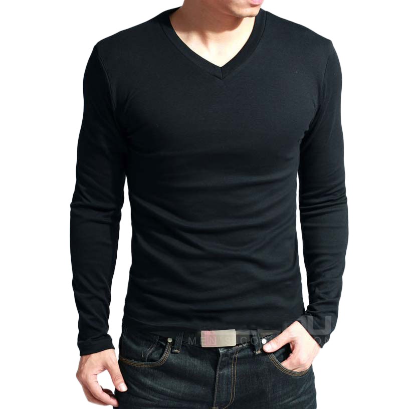 Camiseta Masculina Manga Longa Gola V Versão Fashion