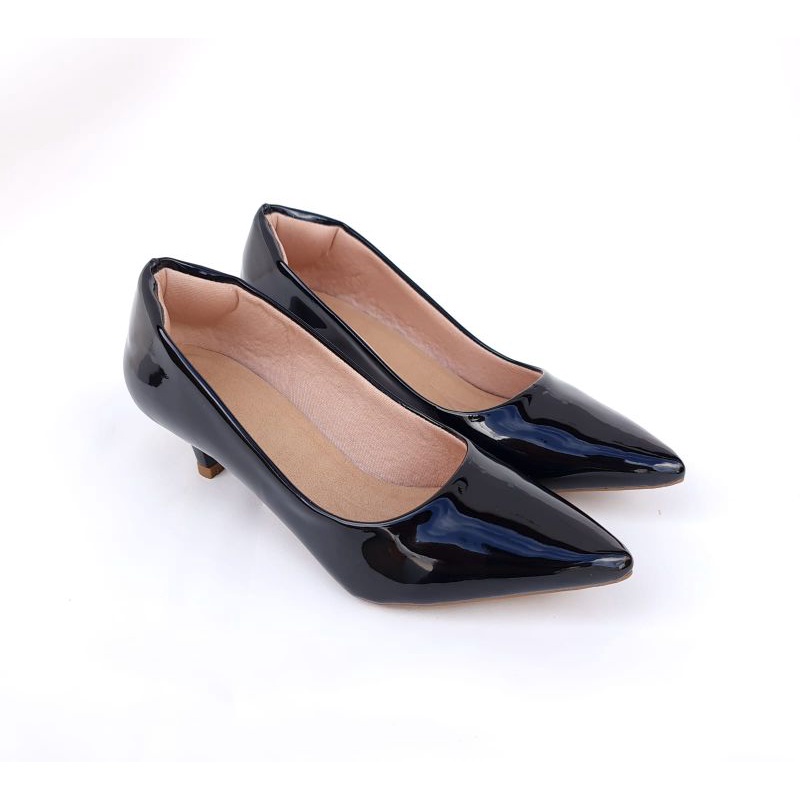 Sapato Scarpin Feminino Liso Confort Salto Baixo Grosso Verniz Promoção