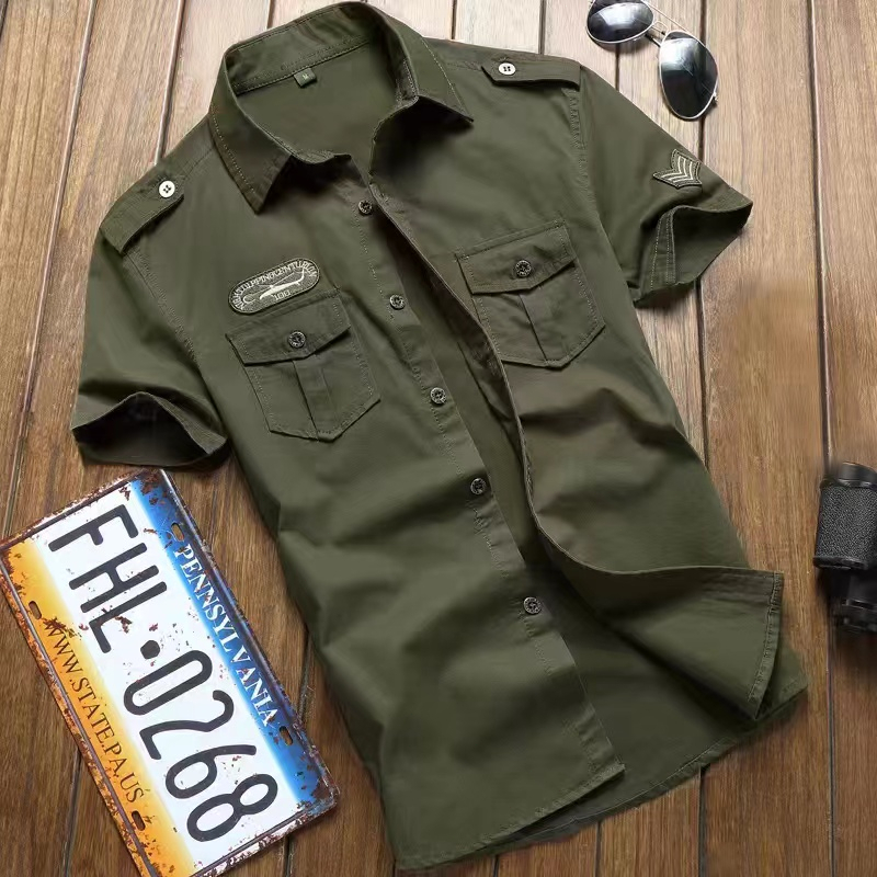 Camisa Militar Masculina Tática Manga Curta De Verão Cor Lisa Alta Qualidade Bolso 100 % Algodão