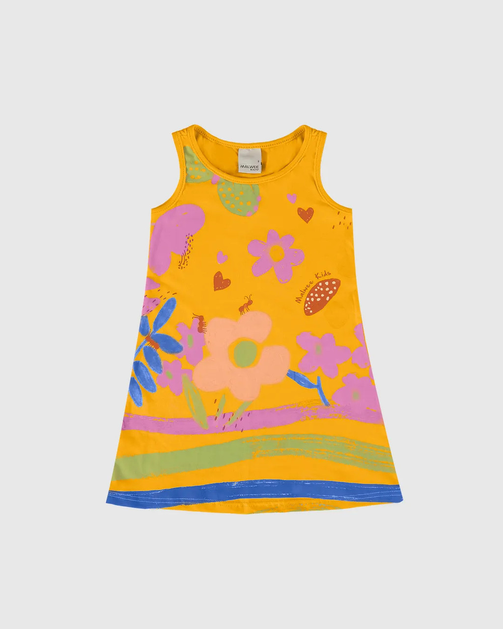 Vestido Infantil Evasê Floral - Malwee Kids (Amarelo)