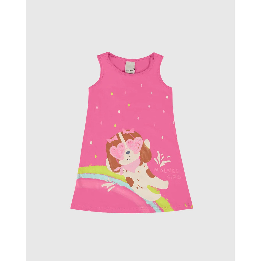 Vestido Infantil Evasê "Cachorrinho apaixonado" (Rosa) - Malwee Kids