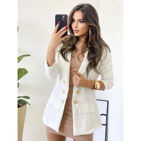 Blazer Feminino Alfaiataria Max Manga longa Com Botão Longo da Moda Casaco Social