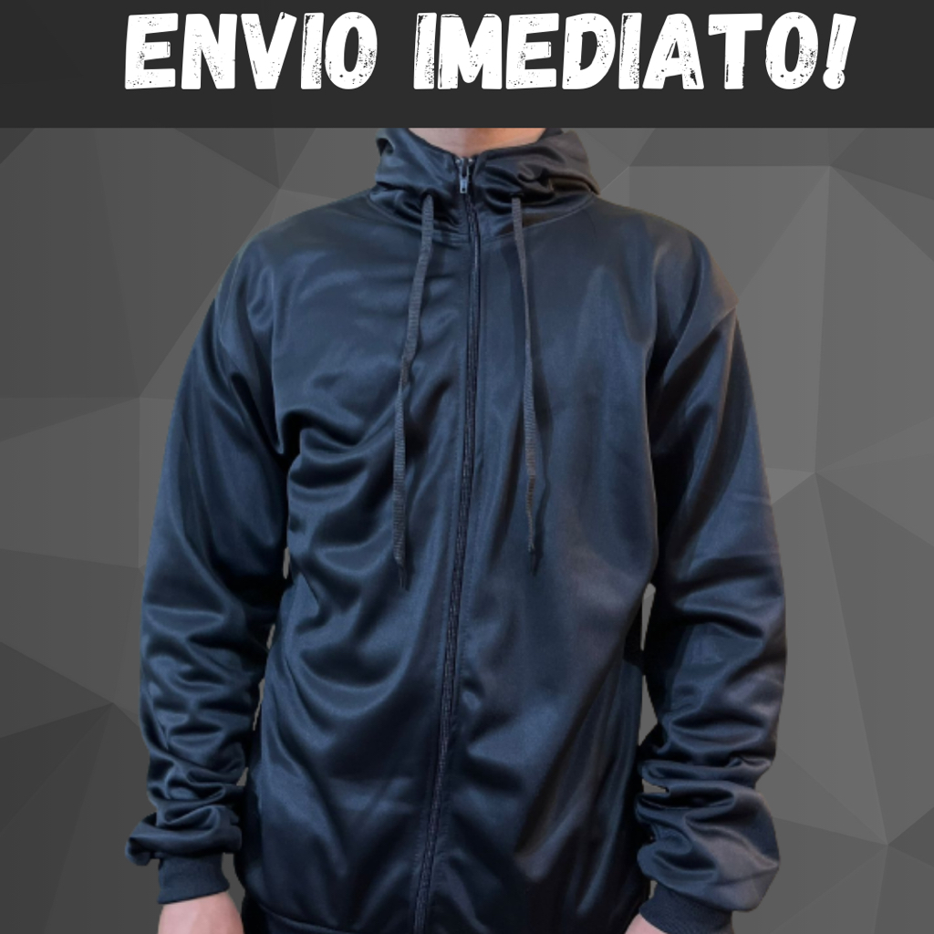 Jaqueta Corta Vento Com Capuz Preta Lisa Preto Liso
