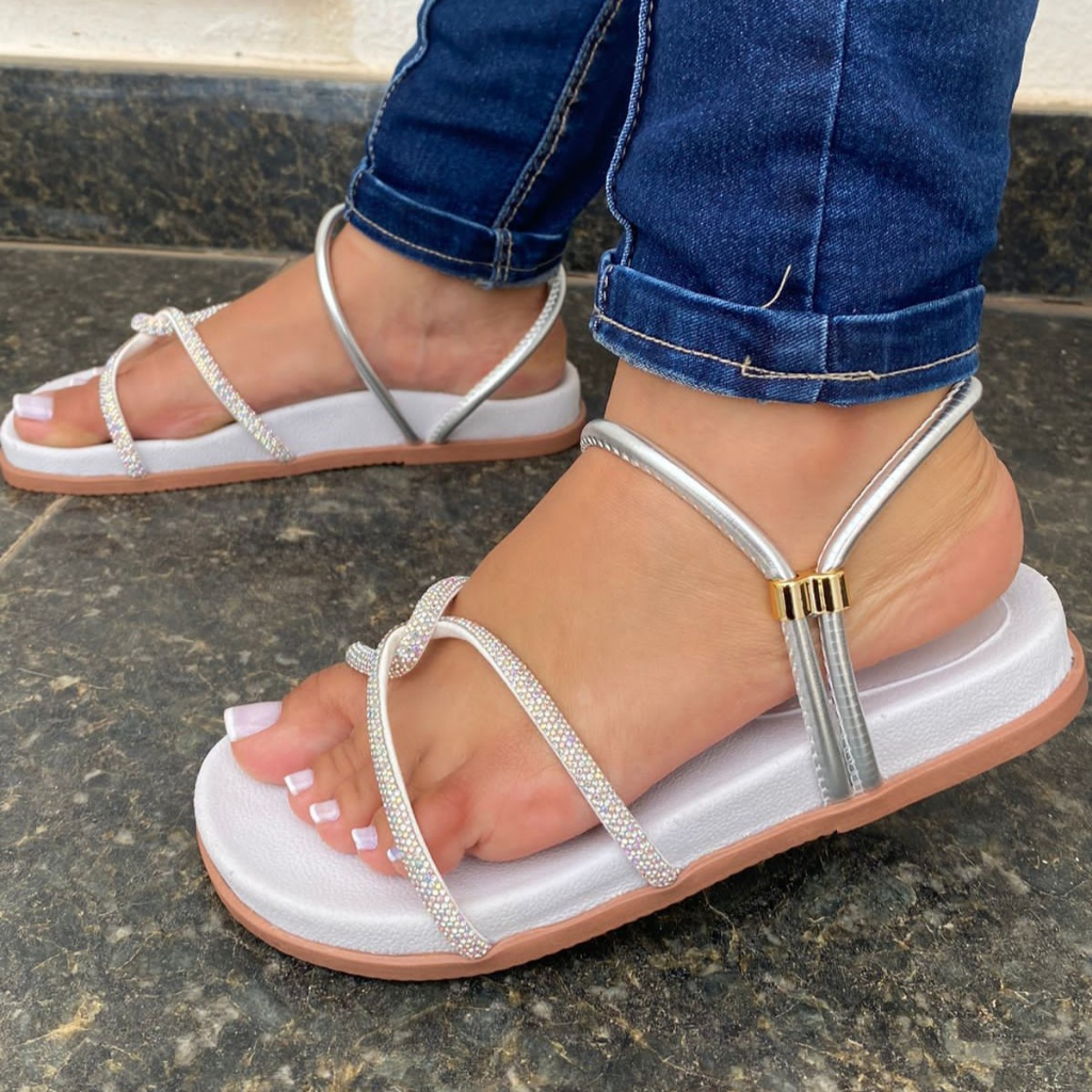 Birk rasteira sandália feminina conforto com AMARRAÇÃO de brilho STRASS off white branca