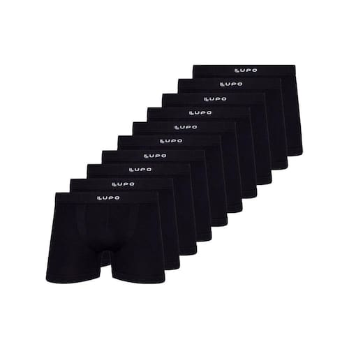 Kit com 10 Cuecas Boxer Lupo 661-001 Preto