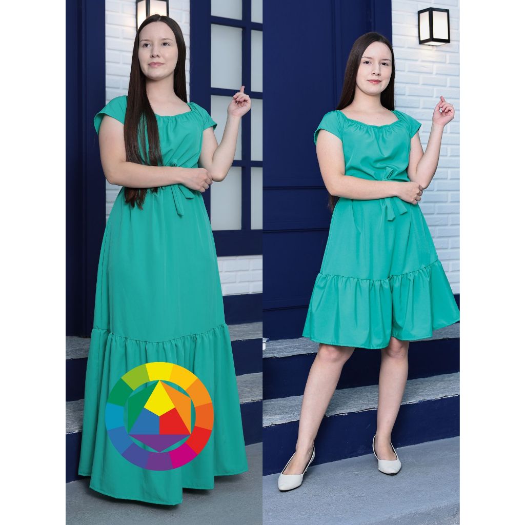 Vestido Feminino Liso Longo ou Curto Ciganinha Com Babado Moda Blogueira Evangélico