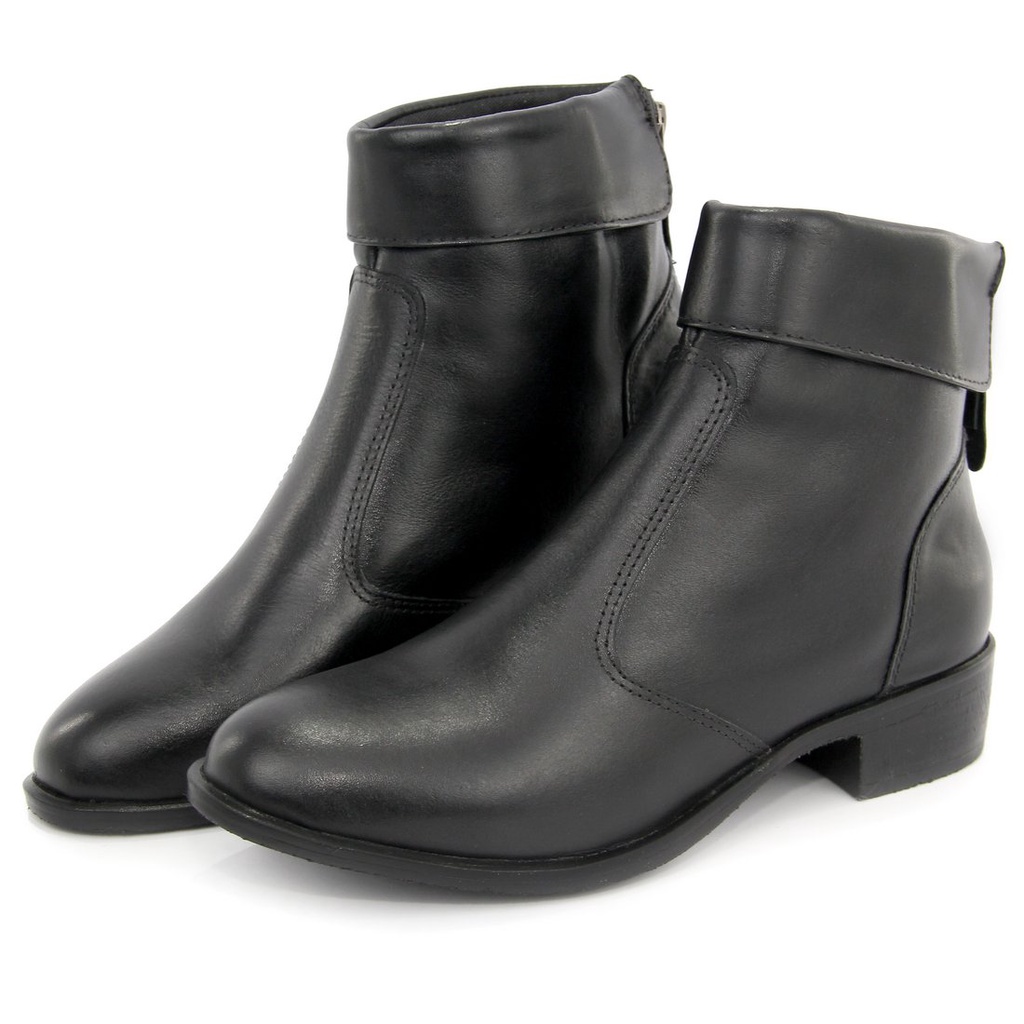 Bota Feminina Couro Flat Rasteira Cano Curto Coturno Conforto Dia a Dia K0614 Preto