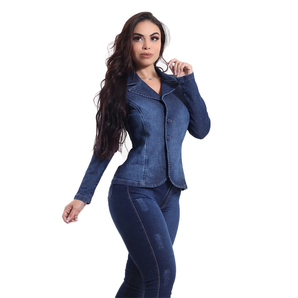 Blazer Feminino Jeans Com Licra Slim Azul Escuro 1