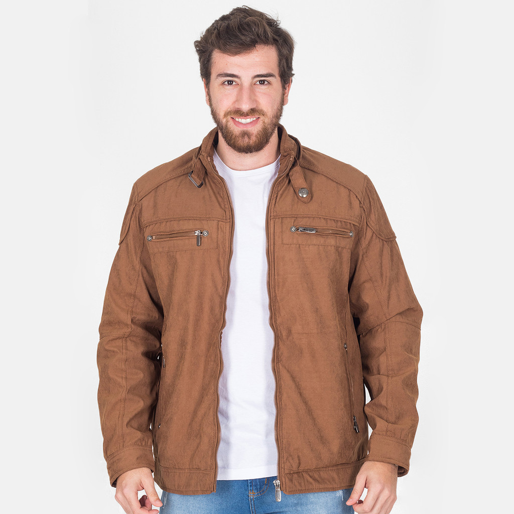 Jaqueta Sarja Peluciada Masculina Com Bolsos Capuz Removível