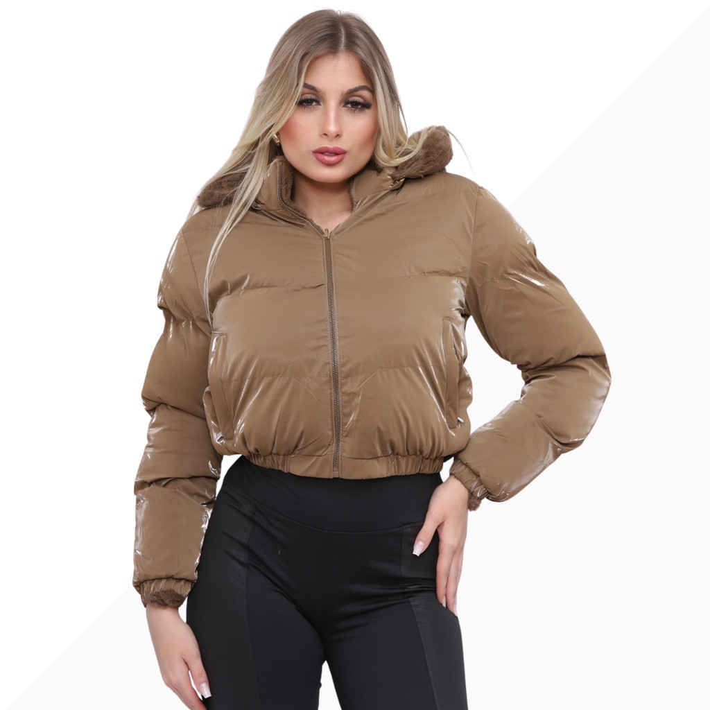 Jaqueta Feminina Puffer Dupla Face Pelúciada com Touca Quentinha para Inverno