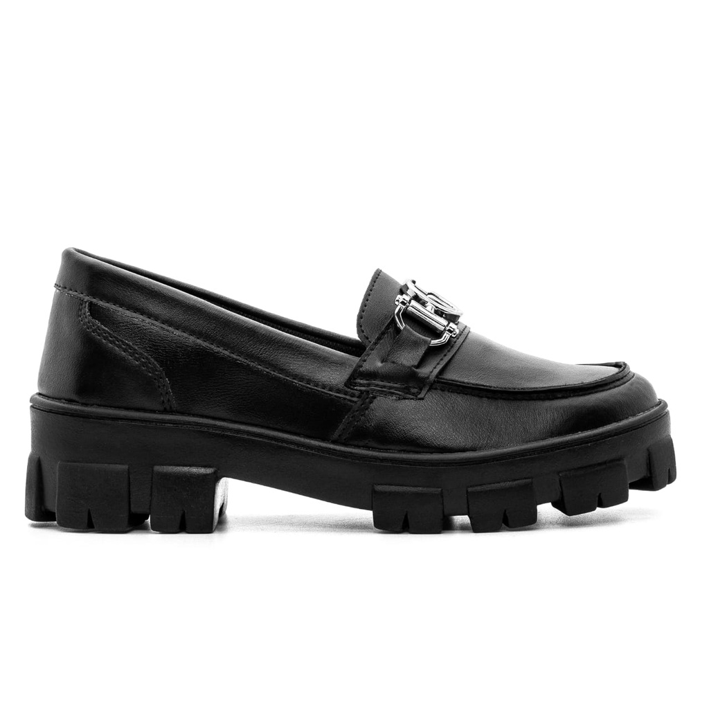 Mocassim Feminino Tratorado Salto Baixo Confortável Corrente
