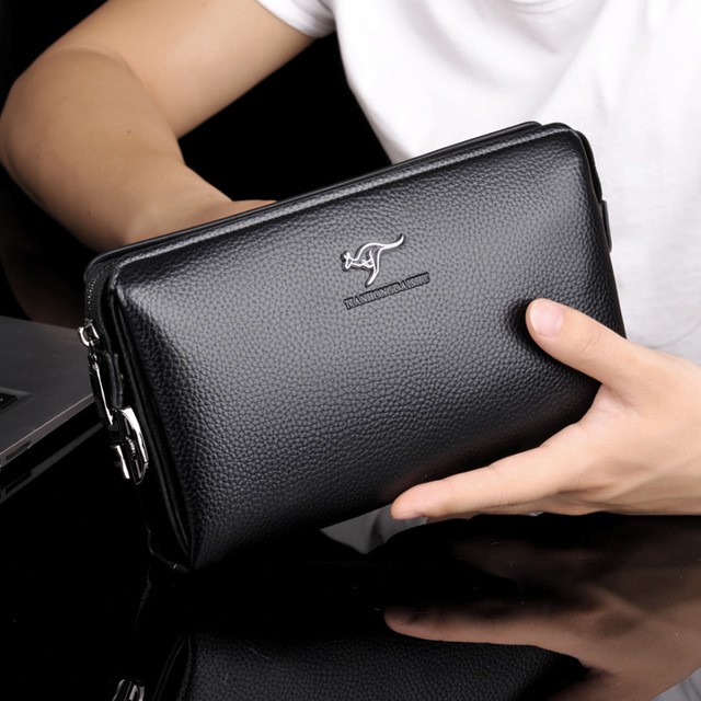 Kangaroo Bolsa De Mão Masculina Antifurto Com Fechadura De Cifra Carteira Couro Genuíno