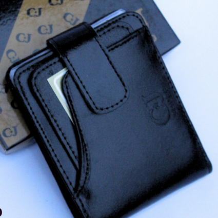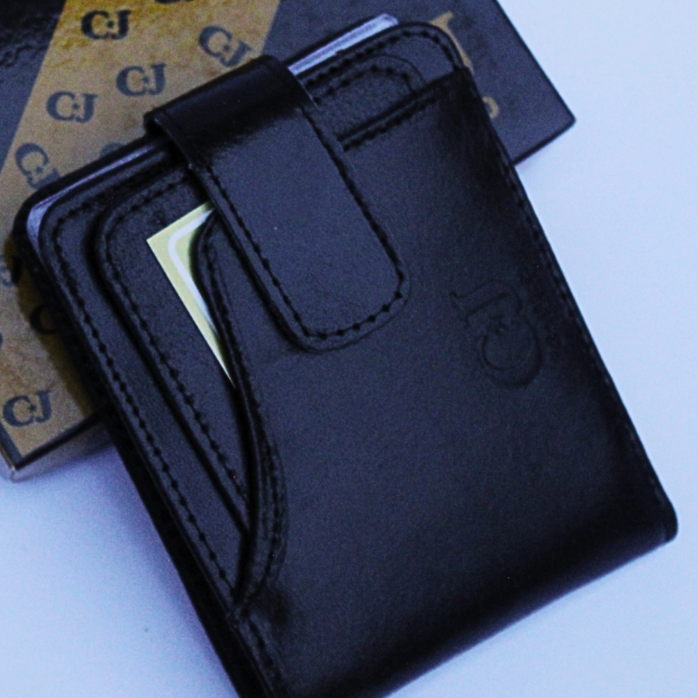 Carteira Para Maço Com Botão De Imã Em Couro Legitimo Na Cor Preta (f N)