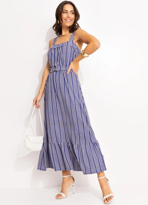 Quintess - Vestido Listrado Azul em Malha de Viscose