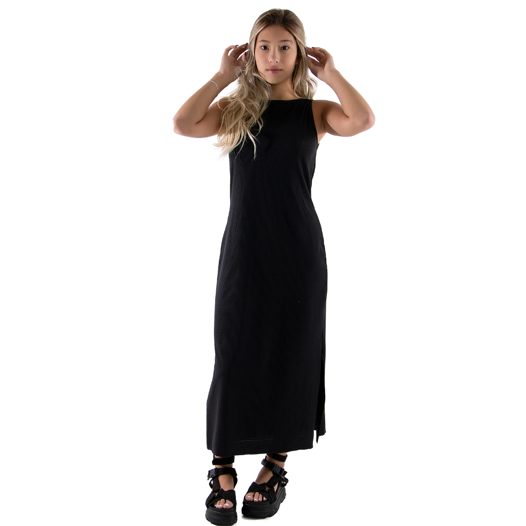 Vestido Longo Midi Fitss Ribana Fenda Canelado Preto