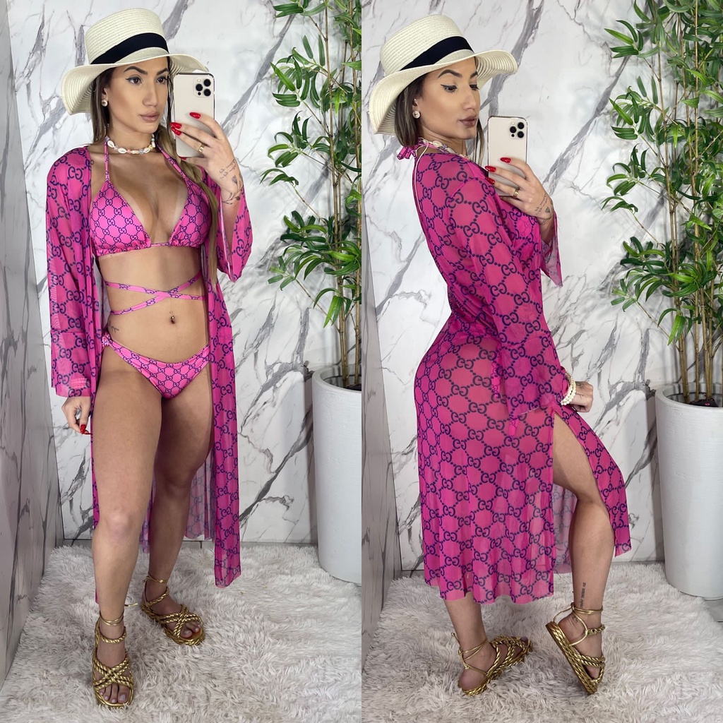 Conjunto Moda Praia Feminino Kimono + Biquini Levanta Bumbum