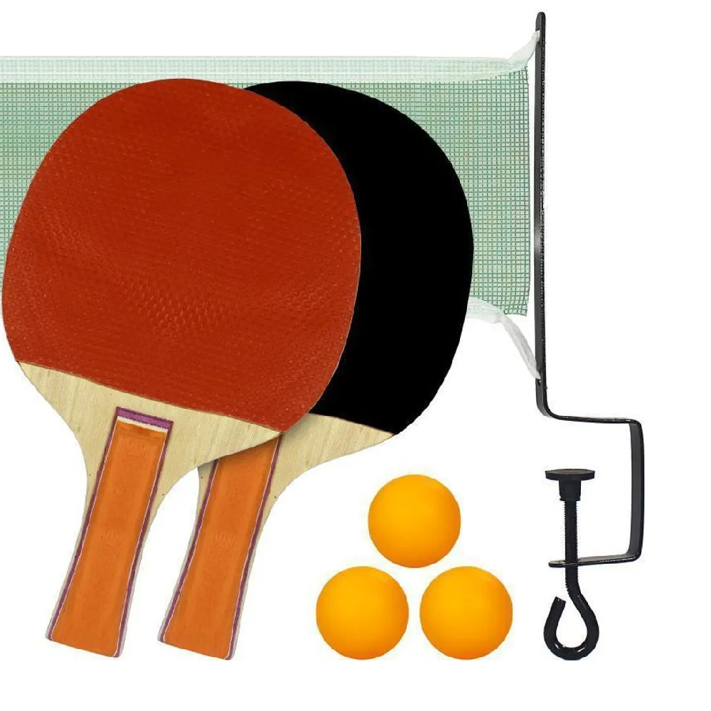 Raquete lisa de madeira ping pong tênis de mesa completo pro com rede + suporte + 3 bolas