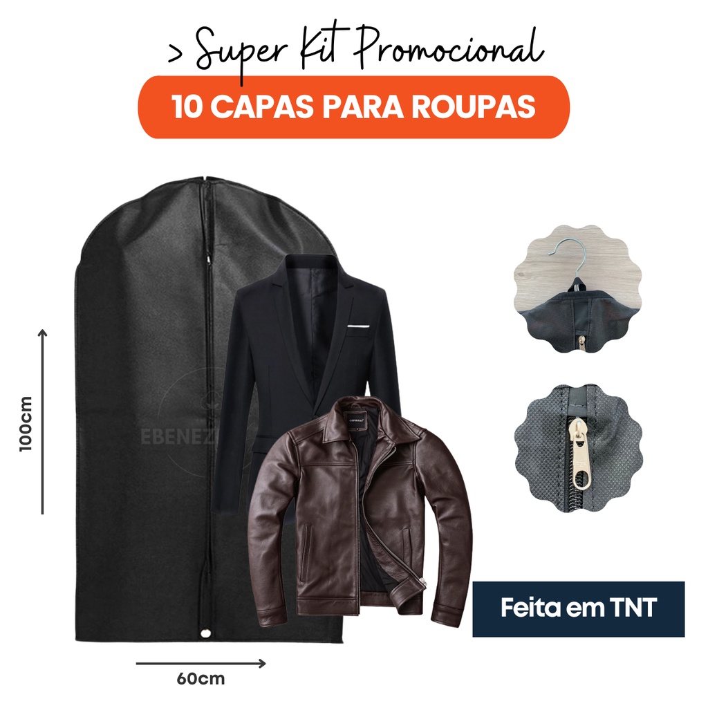 Kit 10 Capas Protetoras Para Terno Jaqueta Blazer em TNT Impermeável C Zíper Antimofo Direto da Fabrica