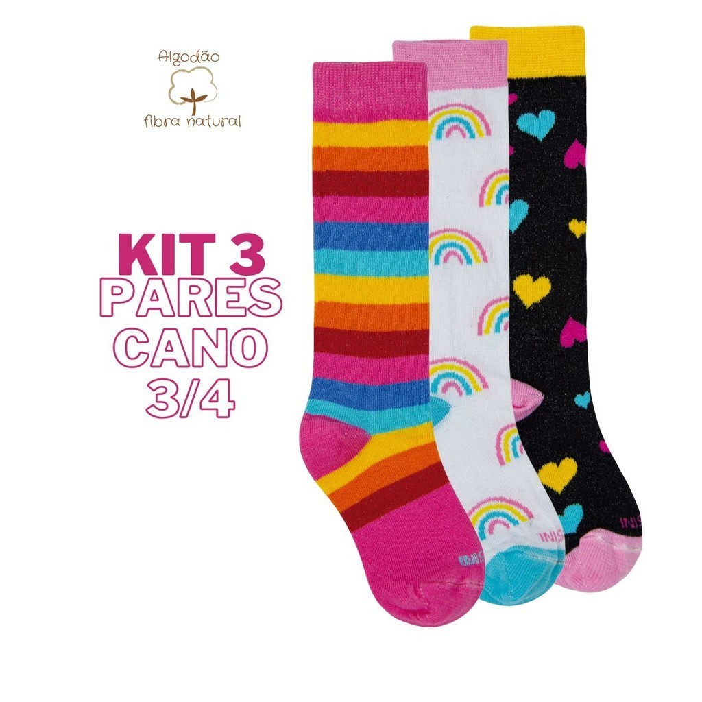 Kit 3 Meia 3/4 Infantil Colorida Galocha Patins Arraial Junina