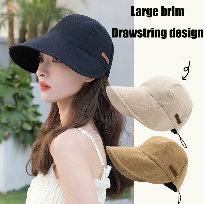 Boné De Pesca Chapéu Caçamba De Viseira Dobrável Esportivo De Algodão Com Aba Grande Ajustável Rabo De Pônei De Verão Moda UV Proteção Solar De Praia Drawstring Exterior