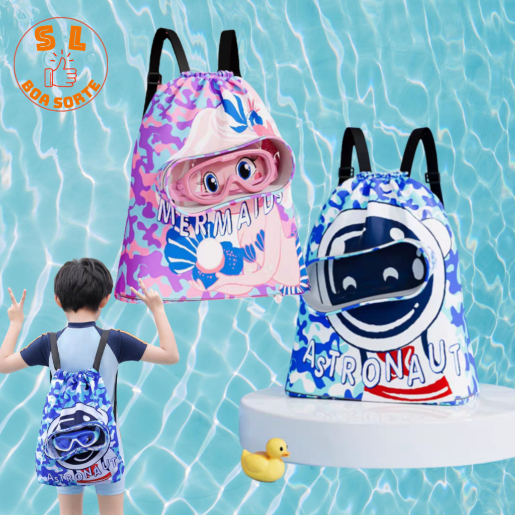 Bolsa De Natação Infantil Prova D'água Para Crianças Praia Piscina Mala de Viagem Saquinho Esportivo Cordão Passeio Escolar Separação De Úmido Meninos Meninas Bolsa para colocar Acessórias de Natação Esporte Boia Roupa de Piscina