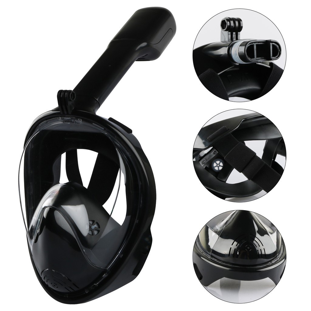 Máscara De Mergulho Snorkel Full Face Suporte Gopro Câmera Preto,Máscara respiratória de natação