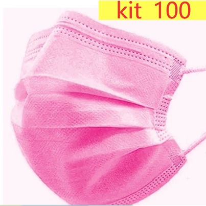 KIT 100 unidades Máscara Descartável De Proteção Facial Tripla ROSA