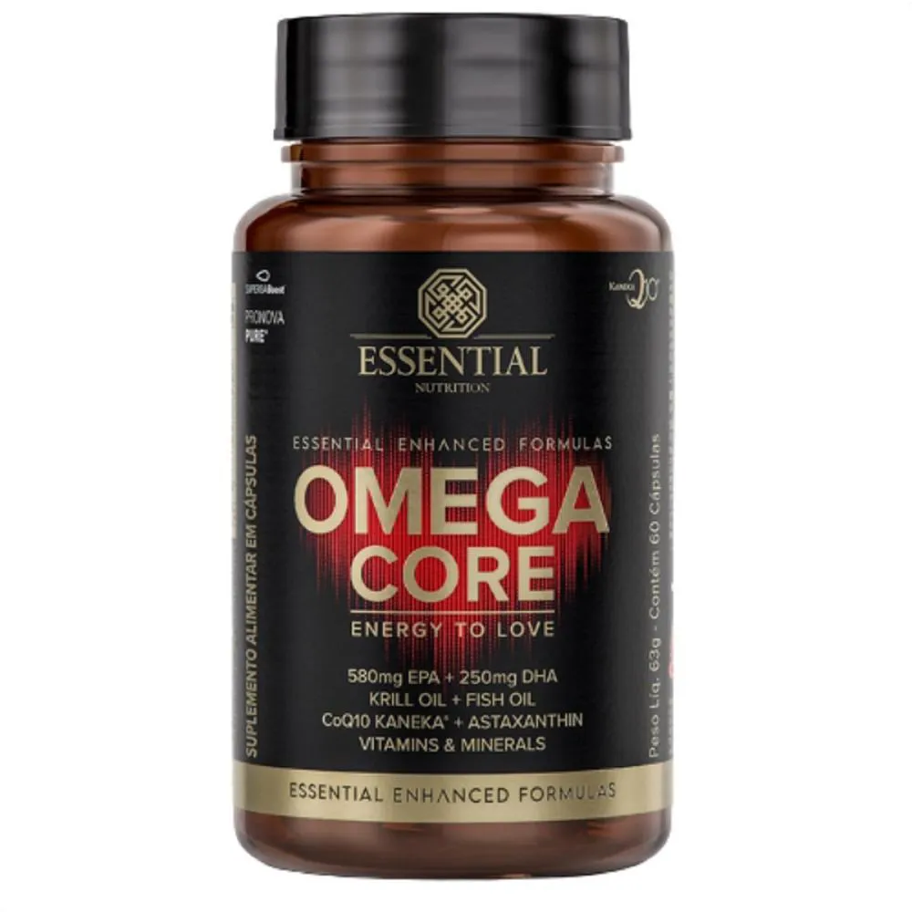 Ômega Core + Coq10 + Ômega 3 TG 60 Caps Essential Nutrition Original e Lacrado