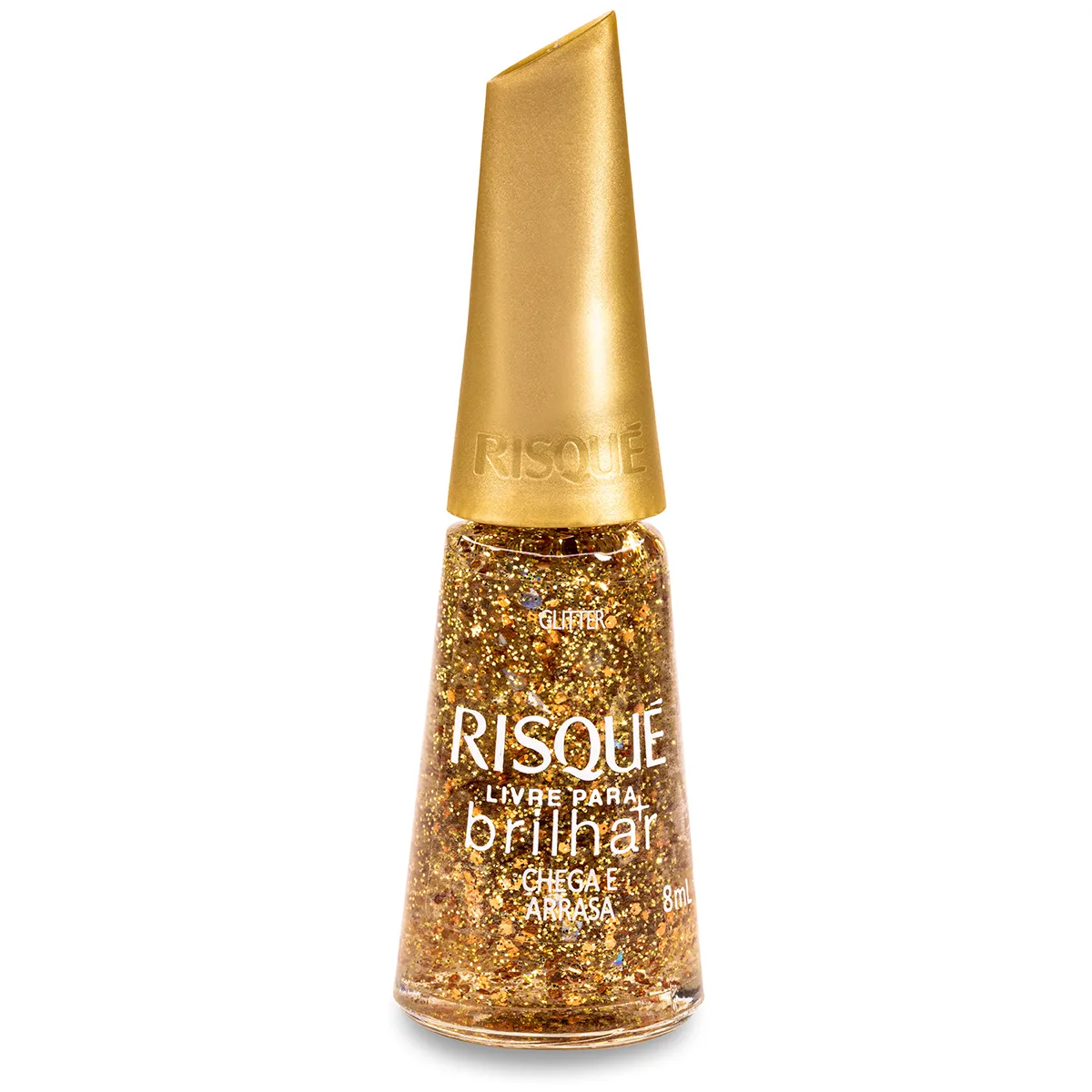 Esmalte Risqué Livre para Brilhar Glitter Dourado Chega e Arrasa 8ml VL
