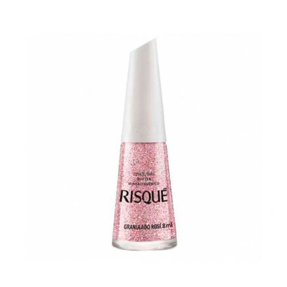 Esmalte Risqué Efeitos Glitter Granulado Rose Hipoalergênico com 8ml
