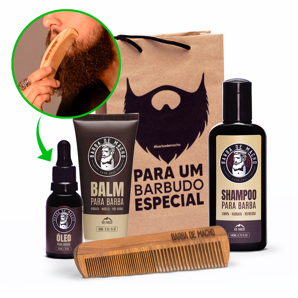 KIT PARA BARBA HIDRATAçãO SHAMPO BALM E OLEO BARBA DE MACHO