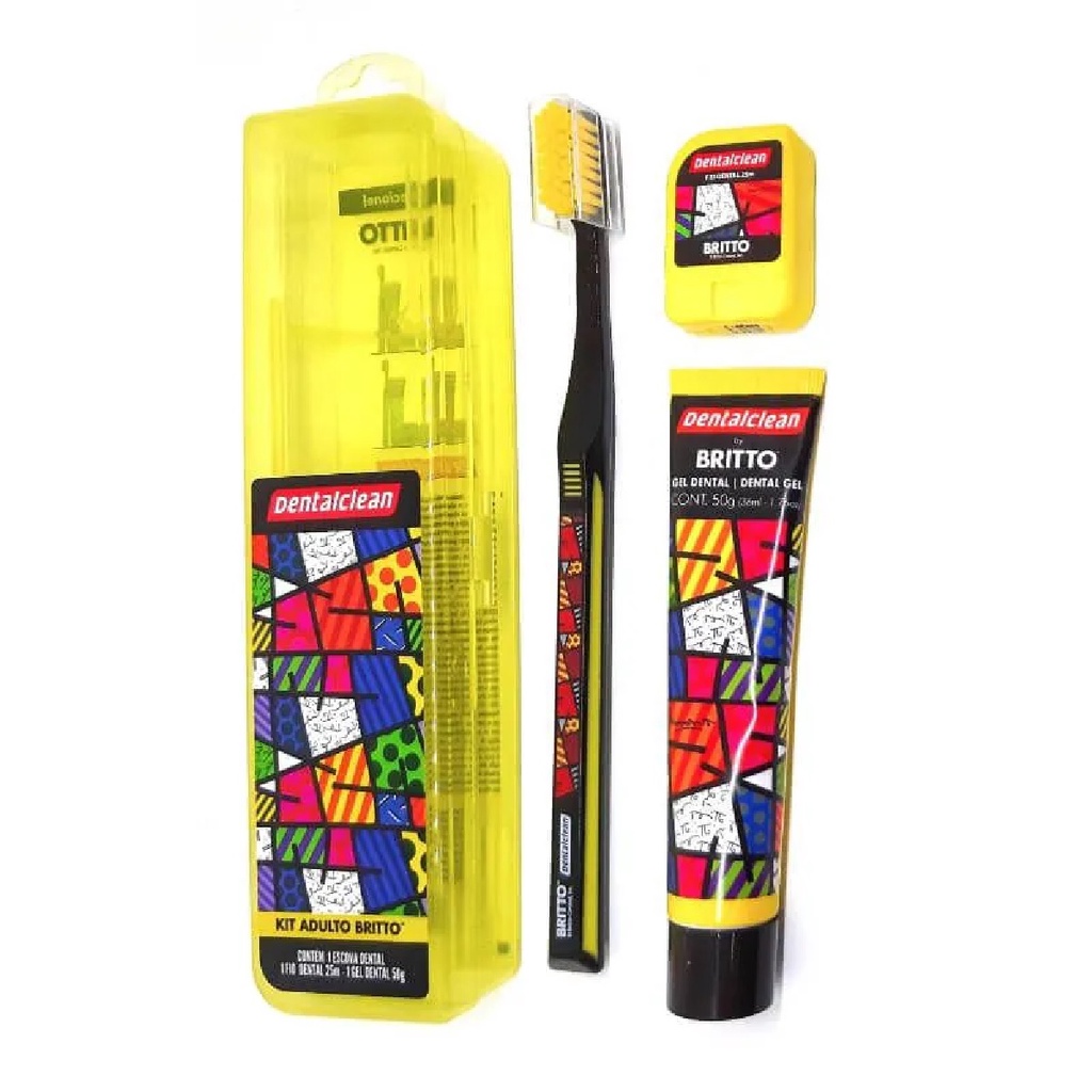 Kit Romero Britto Dentalclean Escova de Dente + Fio Dental 25m + Gel Dental 50g