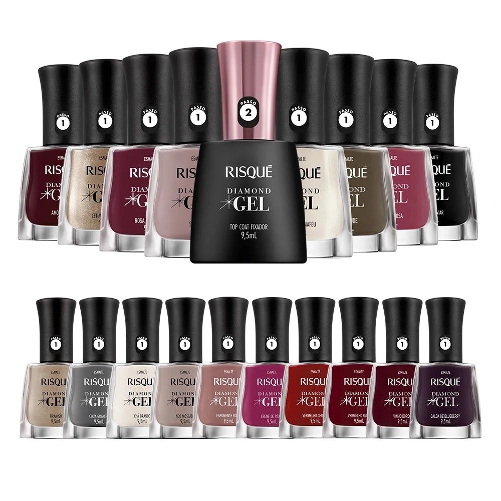 Kit 2 Esmalte Diamond Gel Risque Cor + Top Coat Fixador Kit Manicure Escolha Cor
