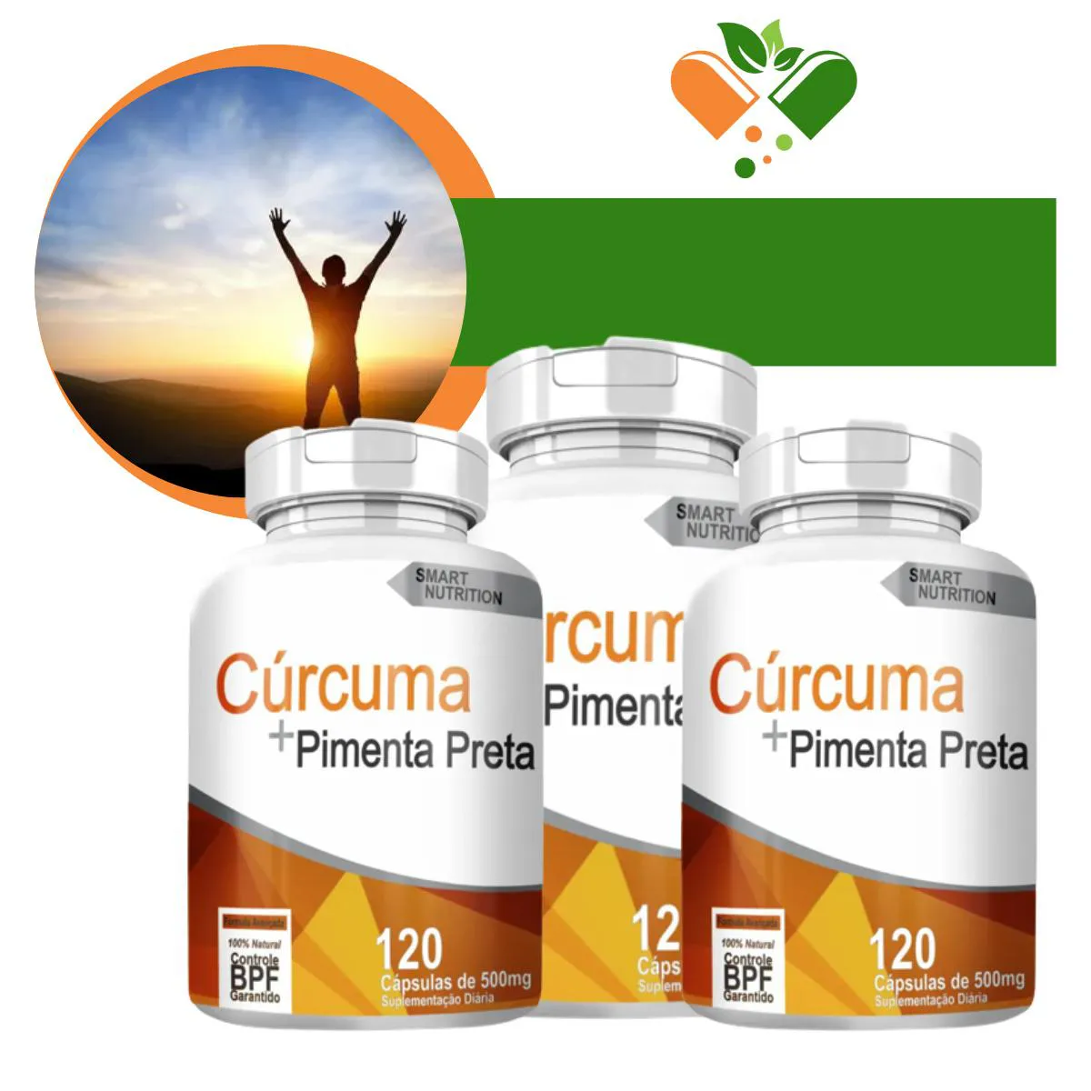 KIT COM 3 POTES CúRCUMA COM PIMENTA PRETA + AçAFRãO DA TERRA C/360 CáPSULAS DE 500MG