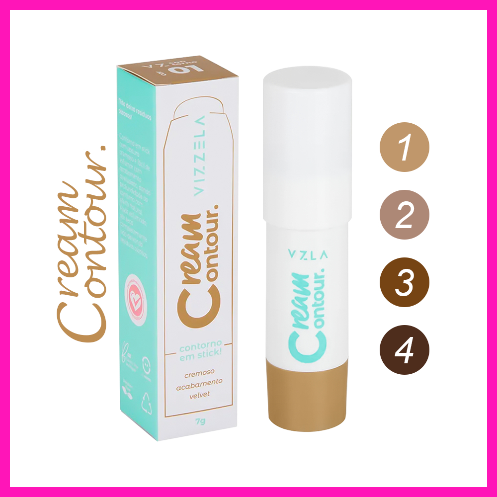 Vizzela Cream Contour Contorno em Stick (Contorno em Stick com textura cremosa e fácil de esfumar com acabamento aveludado)