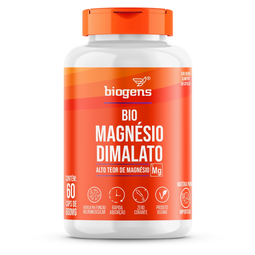 Bio Magnésio Dimalato Vegano, Alto Teor, 60 Caps, Biogens