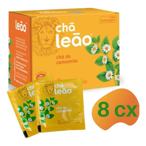 Kit 8 Cx Chá Camomila Leão 15 Sache Envelopados 120 Sachês