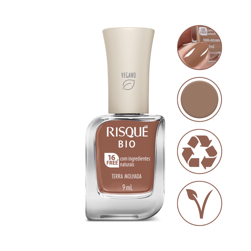 Esmalte Cremoso Marrom Terra Molhada Vegano Bio Risque 9Ml