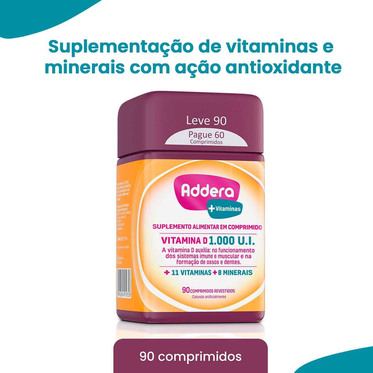 Vitamina D Addera +Vitaminas 1.000UI com 90 Comprimidos