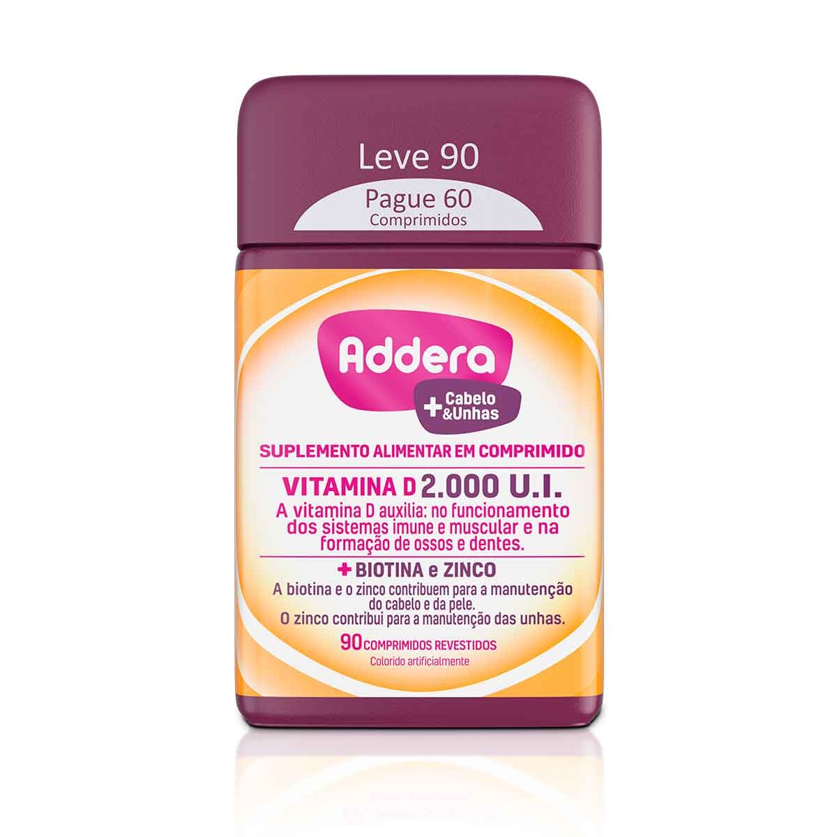 Vitamina D Addera 2.000UI Cabelo & Unhas com 90 comprimidos