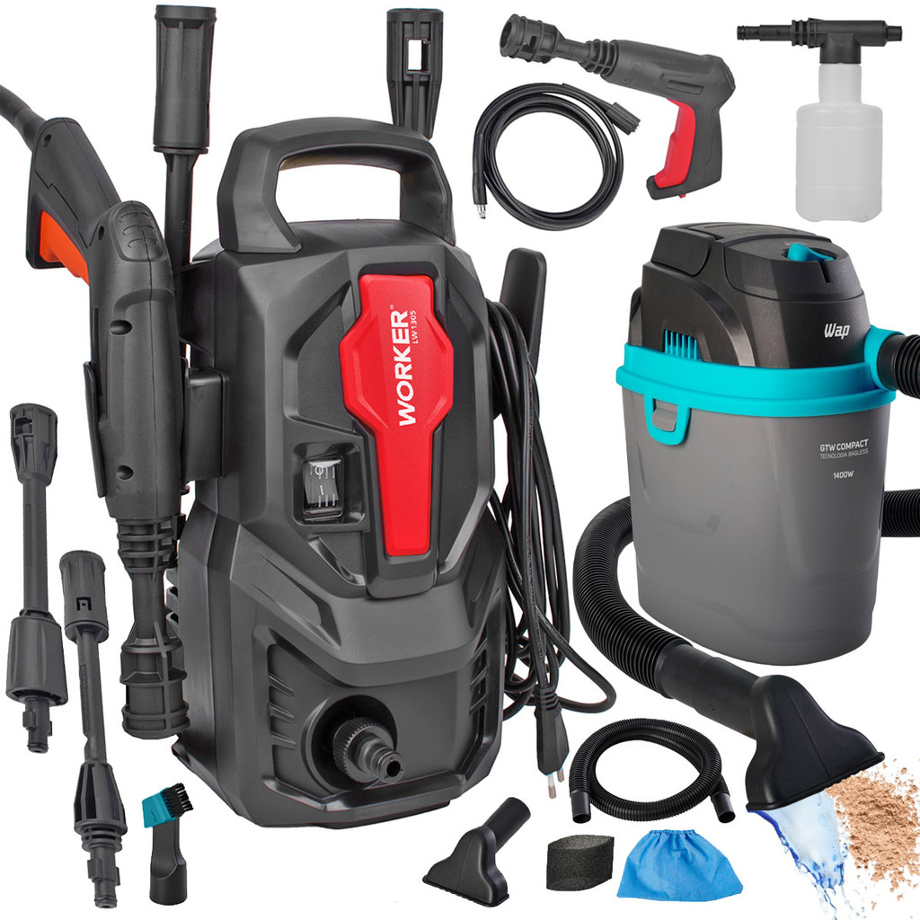 Kit Limpeza Lavadora de Alta Pressão Potente Aplicador de Detergente com Aspirador de Pó e Água