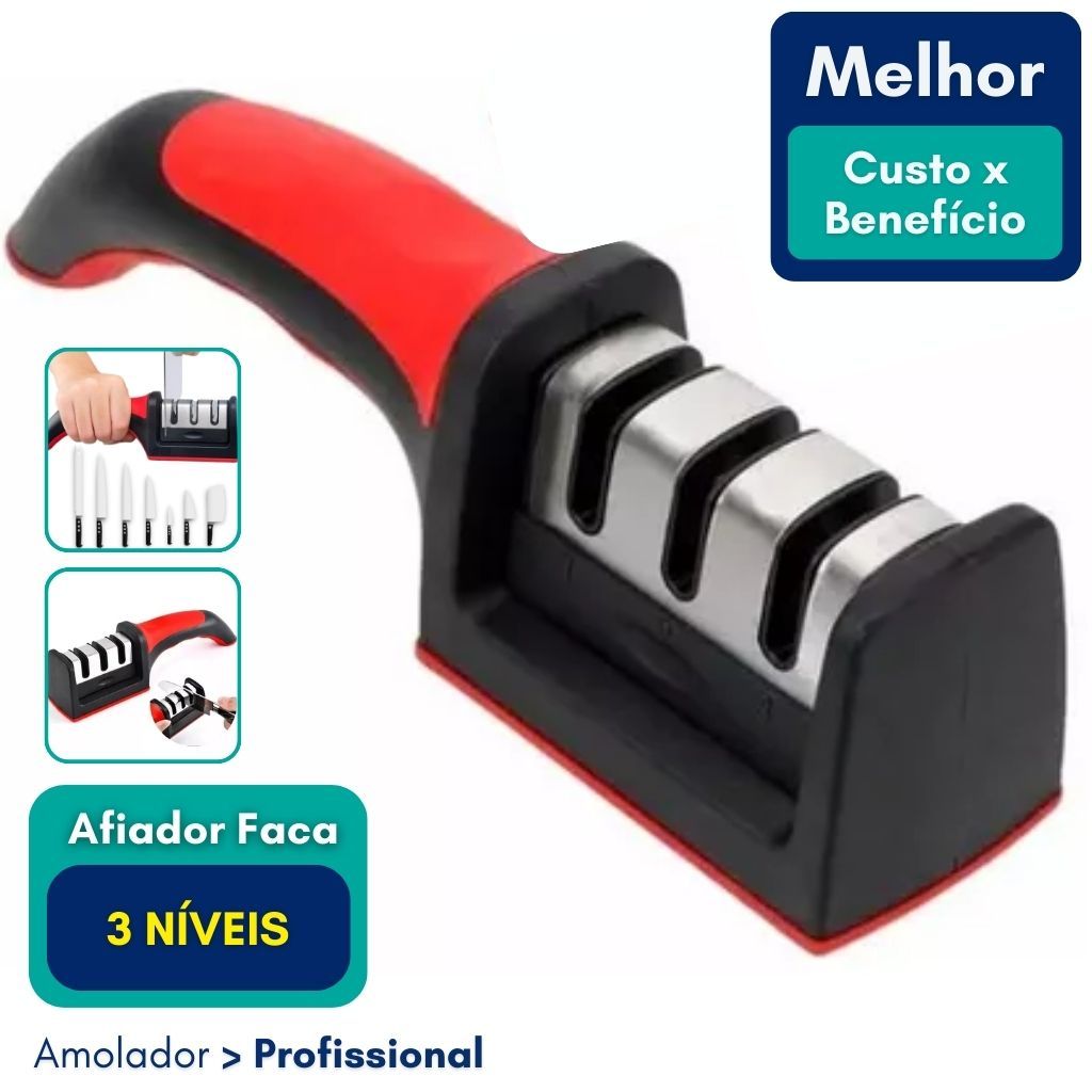 Amolador de facas Afiador Polidor Profissional 3 Etapas Afiar em Aço Inox Com Base Emborrachada Afiadores Pedra Cerâmica Amolar Vermelho