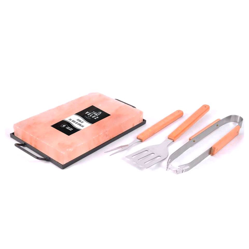 Pedra De Sal Himalaia 30x20x4 cm com suporte de metal E utensílios de Madeira