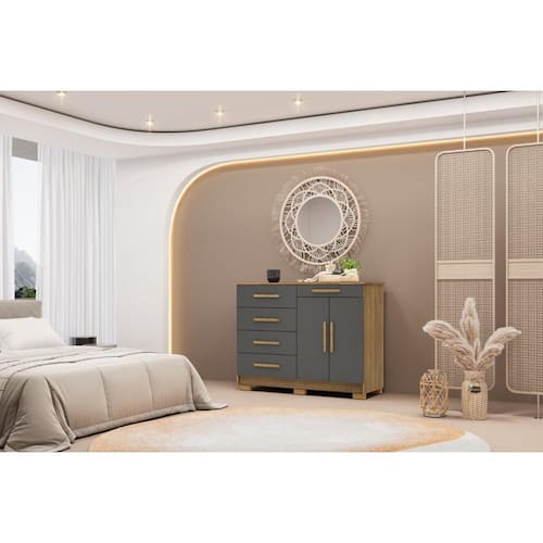 Cômoda 5 Gavetas 2 portas Sirius - Nature Alasca - Vila Rica - Marrom