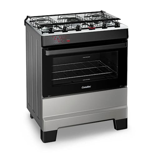 Fogão a Gás Mesa Inox Super Chama Tampa de Vidro Forno 84L Limpa Fácil e Acendimento Automático IDEAL Top T5IAI Cor Inox 5 bocas Bivolt