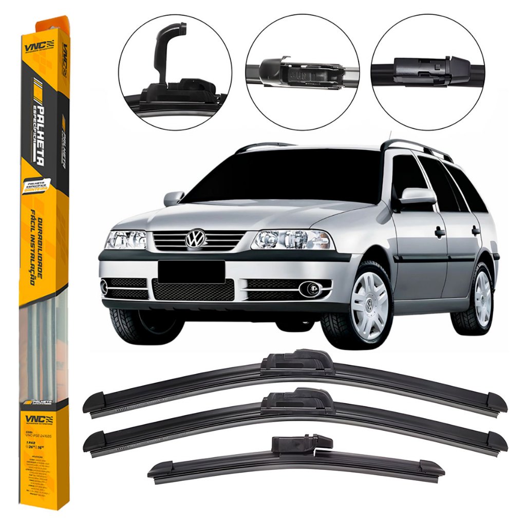Kit de 3 Palhetas para Limpador de Parabrisa Dianteiro + traseiro para Vw Parati G3 2003 2004 2005 2006 2007 2008 2009 2